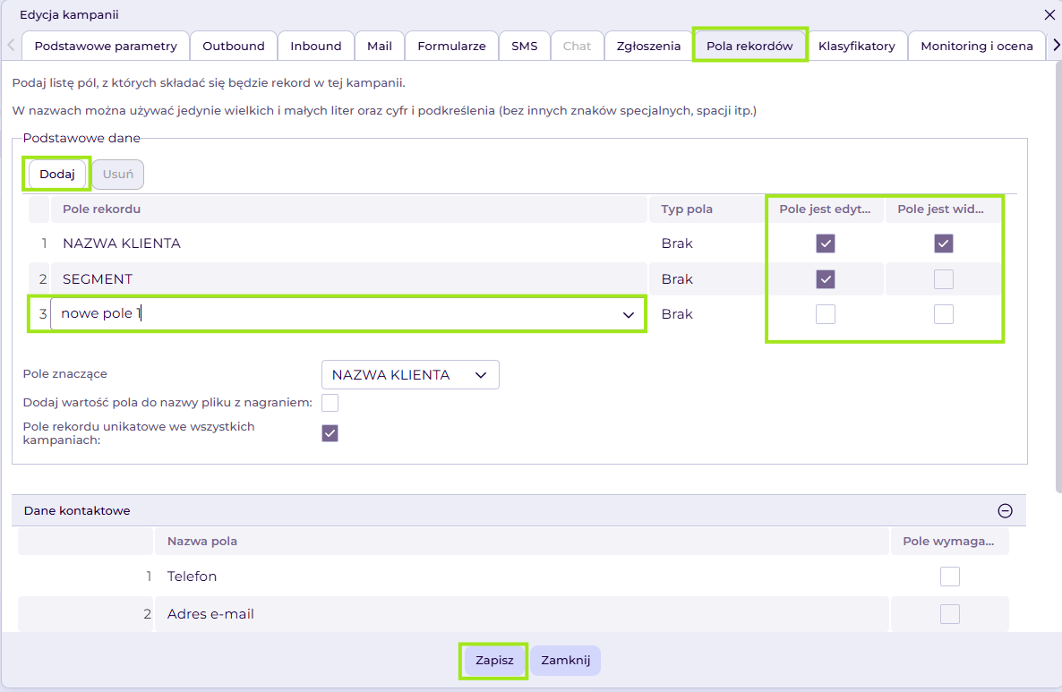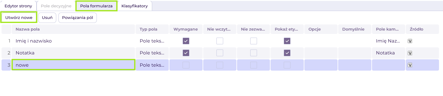 - pole kampanii - informuje z jakim polem kampanii jest powiązane pole formularza (pole nieedytowalne)
