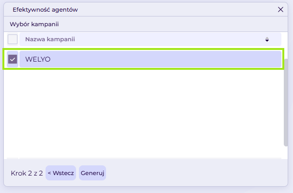 📌 Jeśli agent jest zalogowany równocześnie do kilku kampanii, czas sumuje się dla każdej kampanii osobno, dlatego może przekraczać rzeczywisty czas pracy agenta (np. 8 godzin pracy w dwóch kampaniach = 16 godzin),