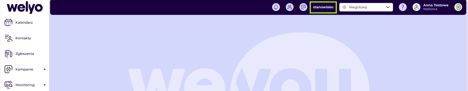 Klikamy opcję Stanowisko w prawym górnym rogu panelu.