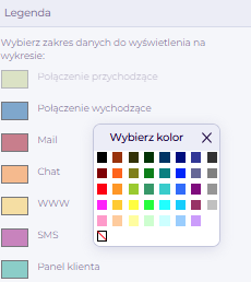 W centralnej części okna wyświetlany jest wykres kołowy przedstawiający liczbę zgłoszeń zarejestrowanych w poszczególnych kanałach komunikacji.