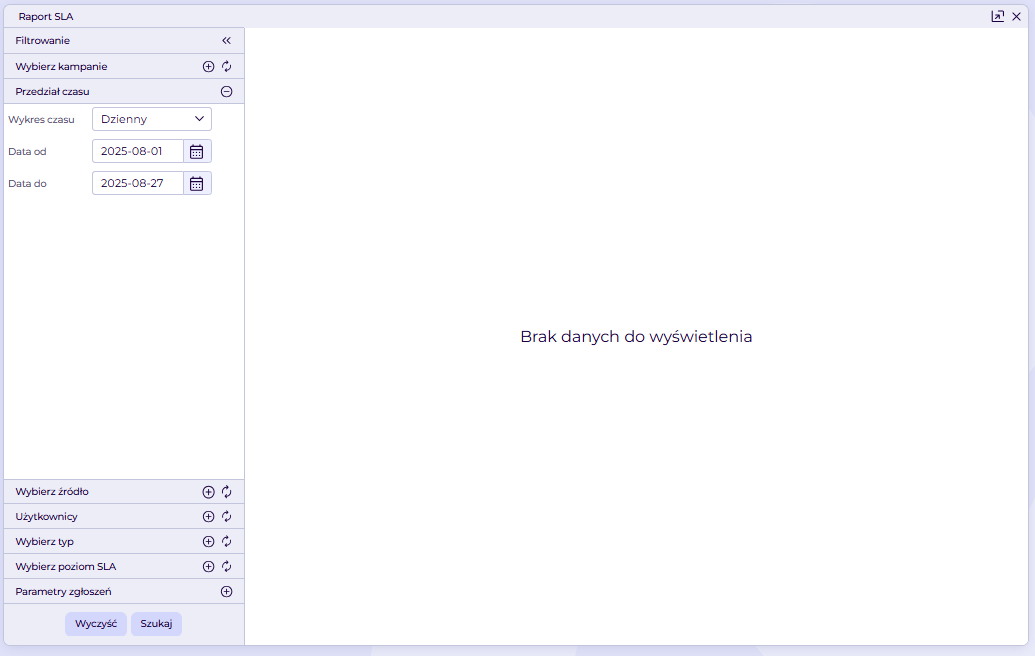 Dlaczego raport SLA nie pokazuje danych?