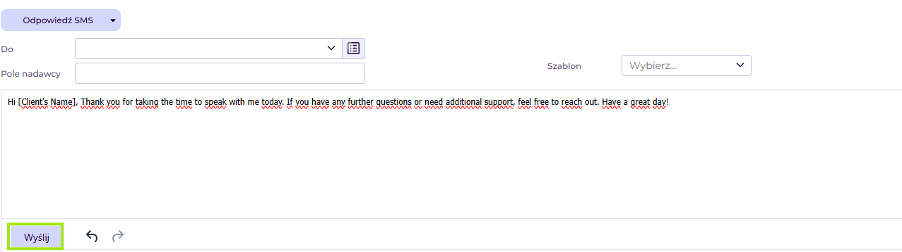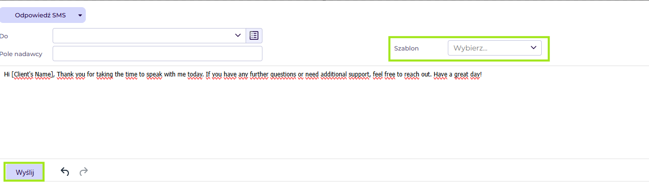 System rozpoznaje także, w jakim języku ma zostać wysłany wstawiony przez Ciebie szablon SMS.