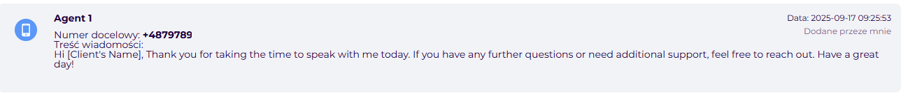 Cała obsługa zgłoszenia odbywa się w języku polskim. Natomiast wiadomości SMS od klienta są w jego ojczystym języku, bądź w języku, którym się posługuje w korespondencji z agentem.