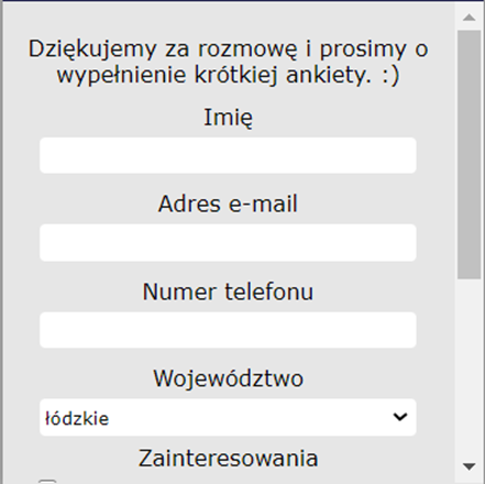 Ankieta w oknie czatu otworzy się po kliknięciu zamknij chat.