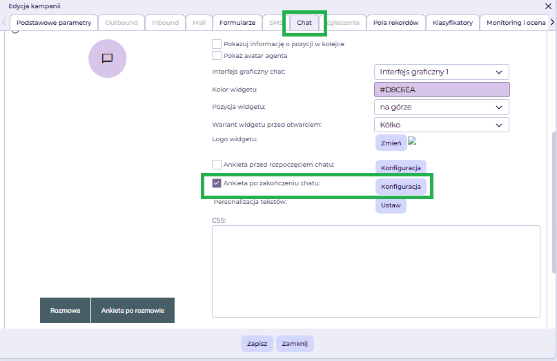 Ankieta po zakończeniu czatu umożliwia zebranie informacji od klienta po rozmowie z agentem.