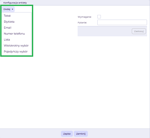 1. Tekst – pole to umożliwia wpisanie dowolnego tekstu, który wyświetlony będzie jako pytanie w ankiecie.