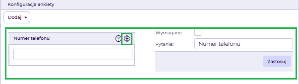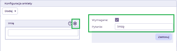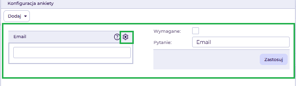 Po dodaniu wybranego pola przechodzimy do jego edycji, klikając ikonkę ustawień.