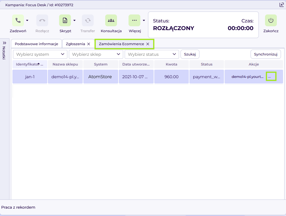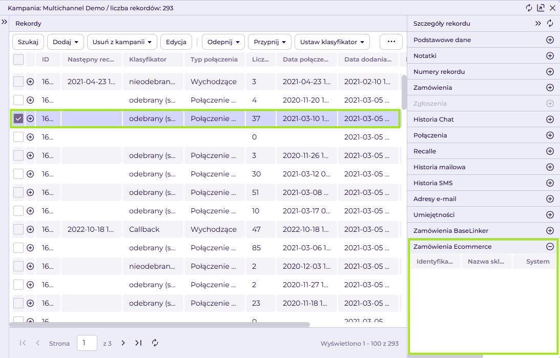 Zaznaczamy rekord i rozwijamy zakładkę zamówienia ecommerce.Zaznaczamy rekord i rozwijamy zakładkę Zamówienia ecommerce.