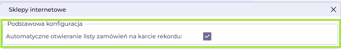 Zakładka zamówienia ze sklepów internetowych może być automatycznie otwierana na karcie rekordu, wystarczy włączyć odpowiednią opcję w oknie konfiguracji sklepów internetowych w Welyo (ścieżka: Administracja > Integracje > Sklepy internetowe > Automatyczne otwieranie listy zamówień na karcie rekordu).