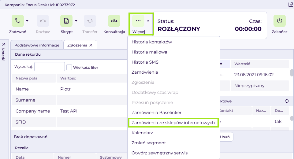 W panelu agenta informacje o zamówieniach będą dostępne po kliknięciu na Rekordy w kampanii, podgląd jest wtedy podobny do tego, który widzimy w panelu administratora.