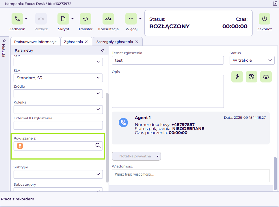 W platformie Welyo dostępna jest możliwość powiązania zgłoszenia z zamówieniem, dzięki czemu agenci w przypadku kontaktu z klientem w prosty sposób dotrą do informacji, jakiego zamówienia sprawa dotyczy.