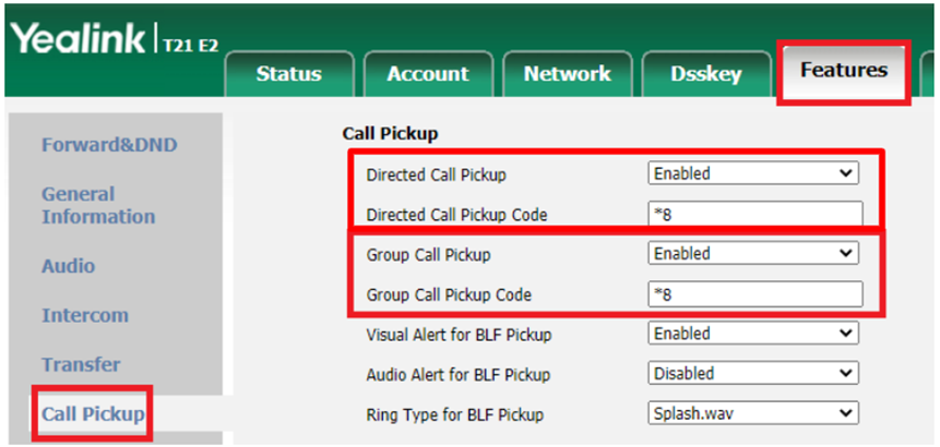 W tym celu przechodzimy do zakładki Features -> Call Pickup.