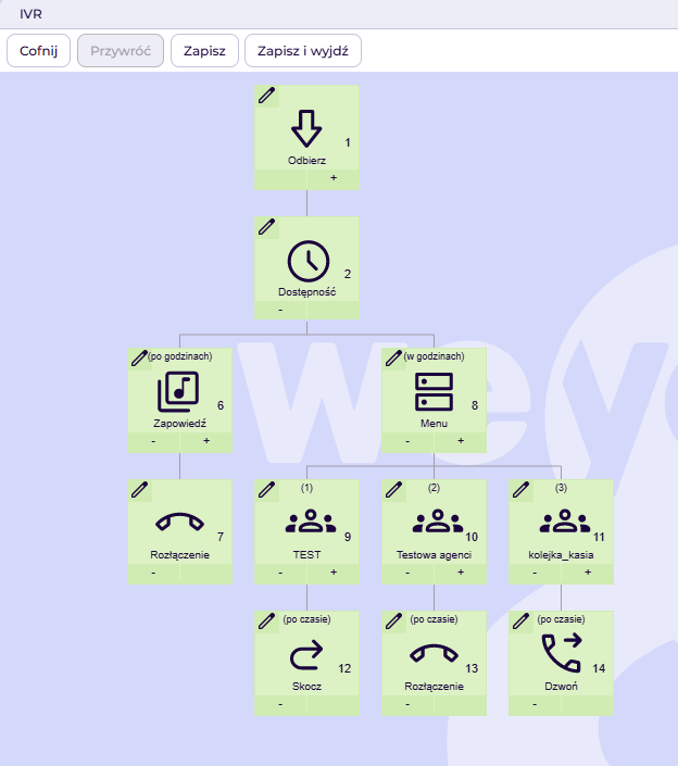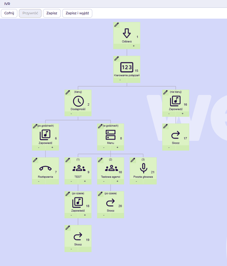 Poniżej przedstawione są schematy IVR, które pomogą zrozumieć działanie poszczególnych bloczków.