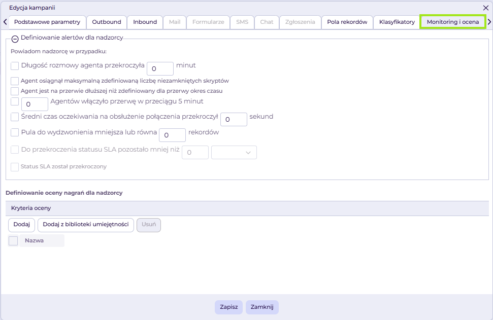 - Wymagana umiejętność – wybieramy umiejętność, która jest konieczna dla obsługi rekordów w danej kampanii.