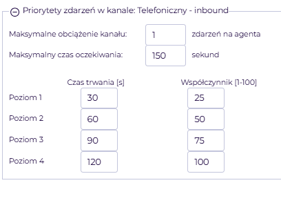 2. Priorytety zdarzeń w kanale: Telefoniczny-inbound