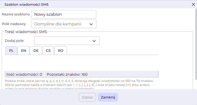 - Dodaj pole – funkcja ta umożliwia dodanie w treści wiadomości pola rekordu, dzięki czemu wiadomości mogą być spersonalizowane.