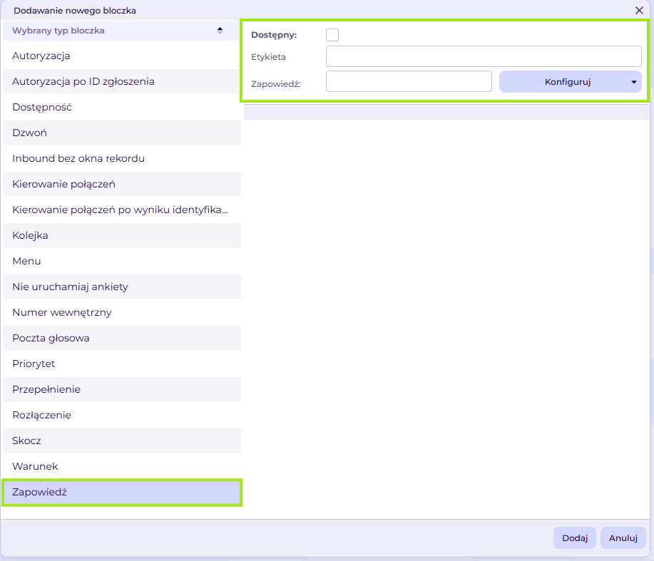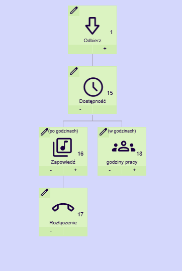 W następnym kroku możemy dodać zapowiedź, która informować będzie o niedostępności infolinii.