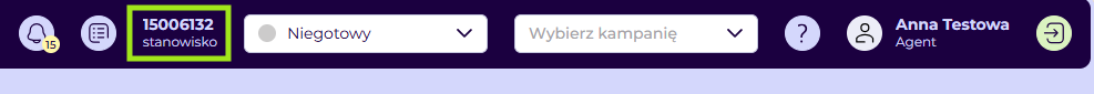 - Status użytkownika - funkcja umożliwia zmianę statusu, dzięki czemu agenci mogą wyjść na przerwę, czy zgłosić gotowość do pracy w kampanii.