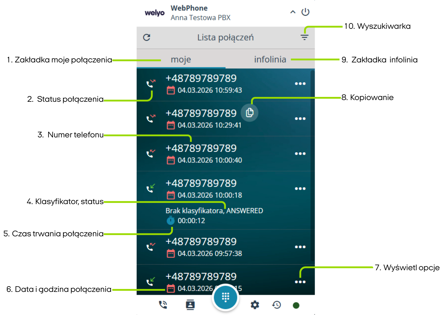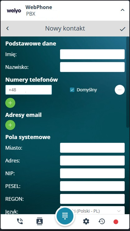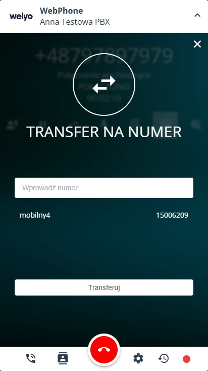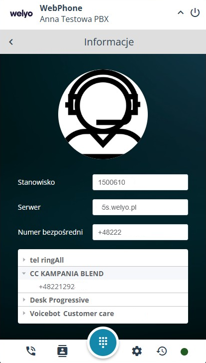 ⚠️ Zakładka dostępna tylko dla użytkownika PBX pracującego z WebPhone.