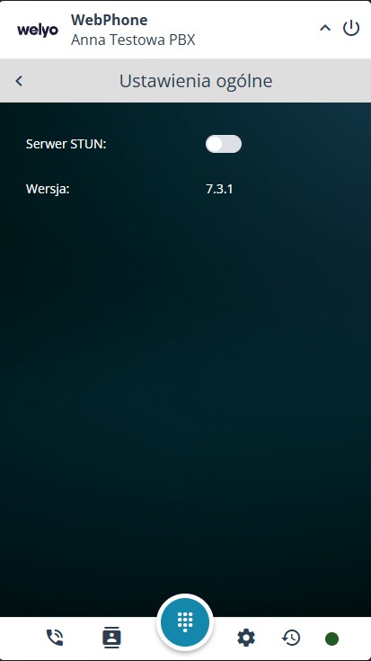 W tej zakładce możliwa jest aktywacja serwera STUN. Znajdziemy tu również informacje o wersji aplikacji.