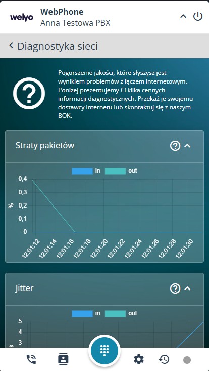 ℹ️ Diagnostyka sieci dostępna jest w trakcie trwania połączenia oraz po jego zakończeniu.