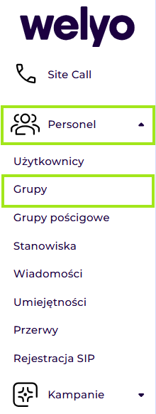 Po zalogowaniu do platformy Welyo przechodzimy do zakładki Personel > Grupy.