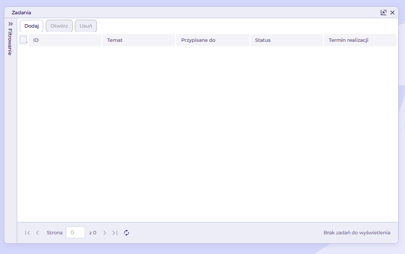 ! Jeśli chcesz zobaczyć wszystkie istniejące zadania, wyczyść wszystkie filtry i naciśnij przycisk szukaj.