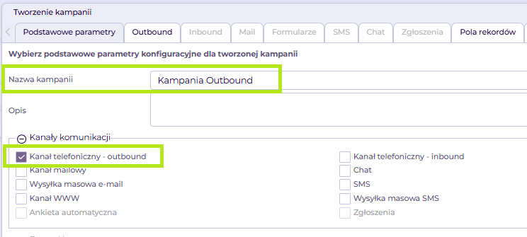 Następnie spośród podanych kanałów komunikacji należy wybrać Kanał telefoniczny - outbound.