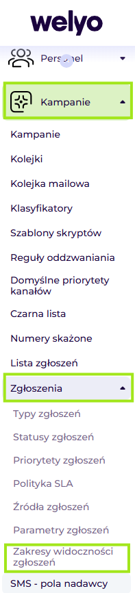 Po zalogowaniu do panelu administratora przechodzimy do zakładki kampanie -> zgłoszenia ->zakresy widoczności zgłoszeń.