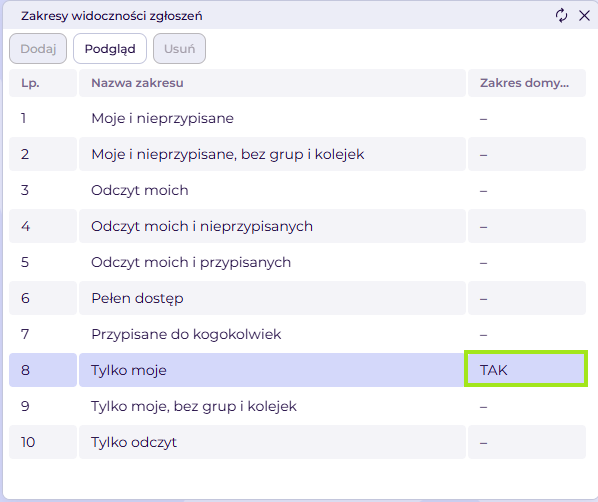 Zakres tylko moje zdefiniowany jest jako domyślny, wartości tej nie można zmienić.