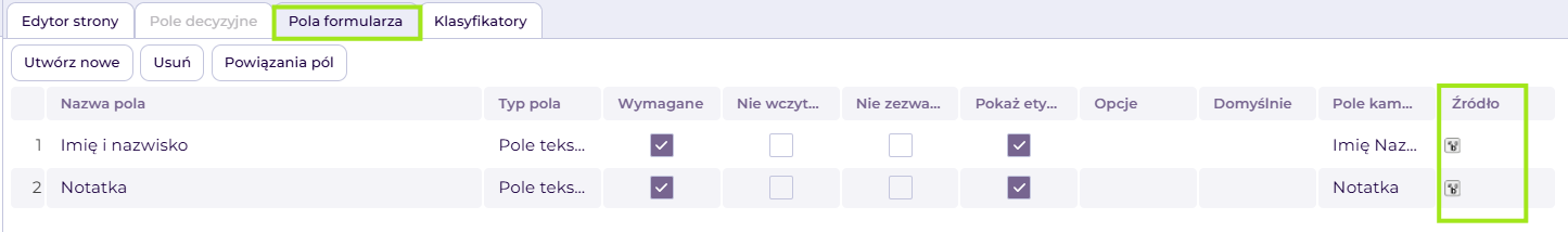 Wybieramy opcję Źródło w zakładce Pola formularza.