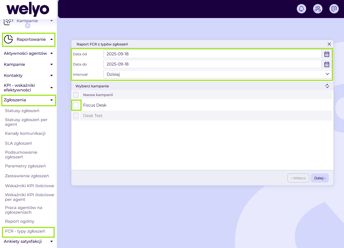 Jak sprawdzić FCR dla typów zgłoszeń w Welyo?