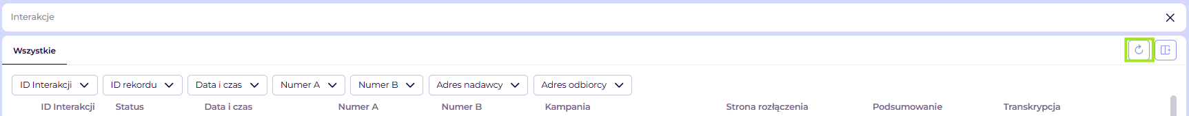 Celem odświeżenia listy interakcji, wybieramy przycisk Odśwież usytuowany na górnej belce po prawej stronie.