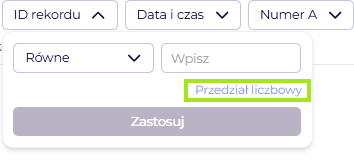 Możliwe jest także wyszukiwanie według przedziałów liczbowych, w tym celu wybieramy opcję Przedział liczbowy, a następnie podajemy wartości od i do, jakie mają zostać wyszukane