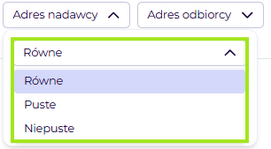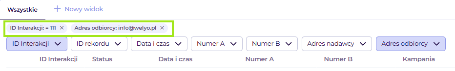 - Puste - wybieramy jeśli chcemy wyszukać interakcje bez uzupełnionego nadawcy