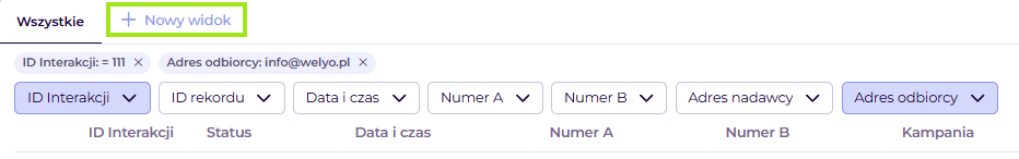 Po nałożeniu interesujących nas filtrów na górnej belce pojawi się opcja Nowy widok +. Klikamy w nią.