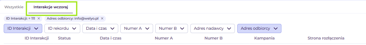 ID interakcji - unikalny identyfikator przypisany do konkretnej interakcji (połączenie telefoniczne / SMS / mail/ chat / formularz www) na platformie Welyo. Dzięki temu numerowi można łatwo odszukać daną interakcję w systemie.