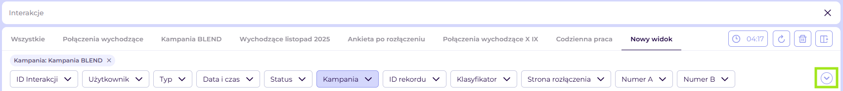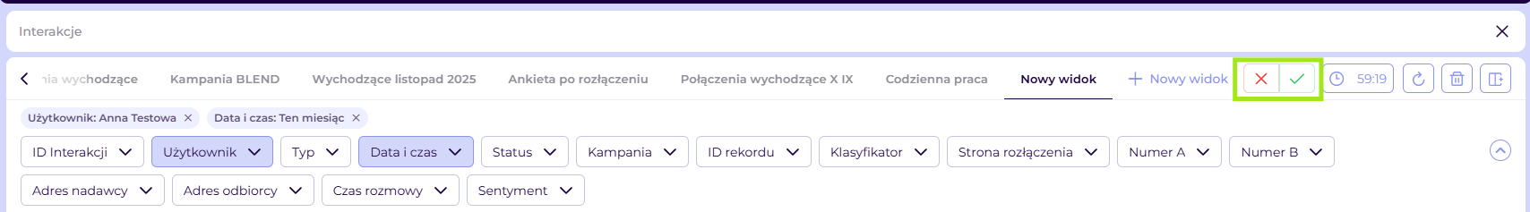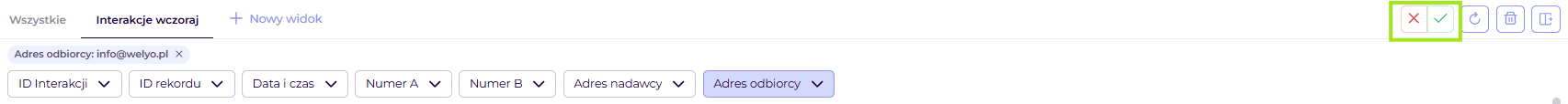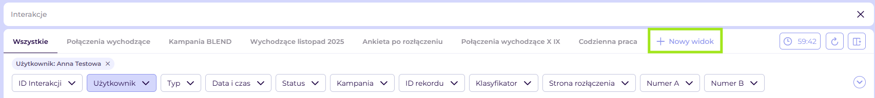 Nowy widok będzie od teraz dostępny do wyboru na górnej belce okna Interakcje.