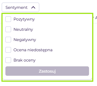 Opcje dostępne do wyboru w filtrze Sentyment: