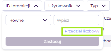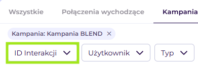 - ID interakcji - umożliwia wyszukiwanie po unikalnym identyfikatorze interakcji (połączenie telefoniczne / SMS / mail/ chat / formularz www) na platformie Welyo.