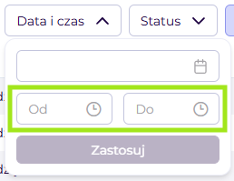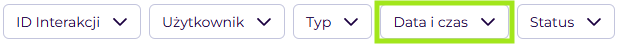 - Data i czas - data, z którą interakcja został zarejestrowana na platformie Welyo. Po kliknięciu w filtr możliwe jest wybranie z jakiego zakresu czasu chcemy wyświetlać dane.