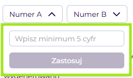 - Numer B - umożliwia wyszukiwanie po numerze docelowym, na który zostało skierowane połączenie. Filtr umożliwia wyszukiwanie po numerze telefonu – nie trzeba podawać całego numeru. Wystarczy wpisać minimum 5 cyfr, a system pokaże wszystkie połączenia, których numer zawiera podany ciąg.