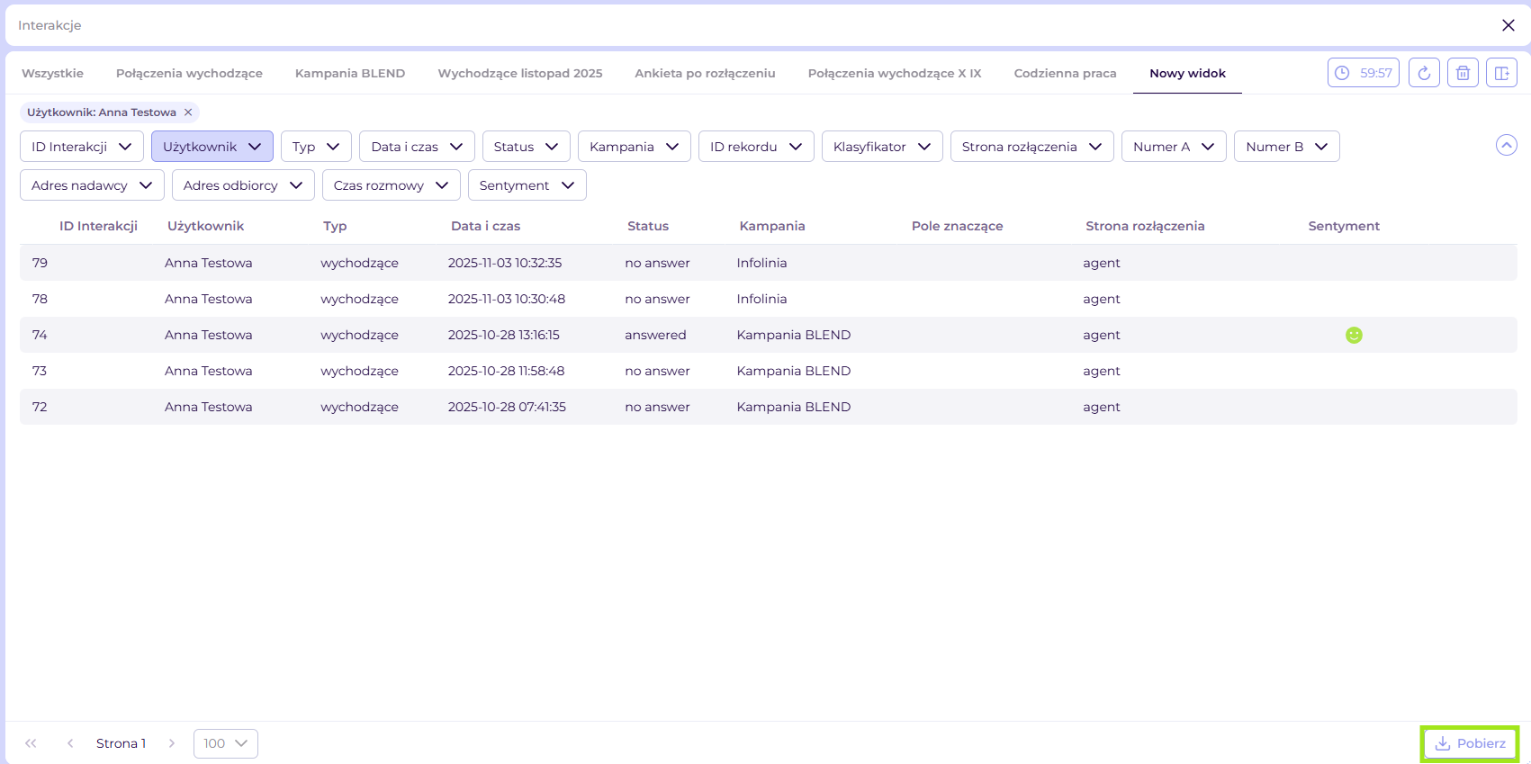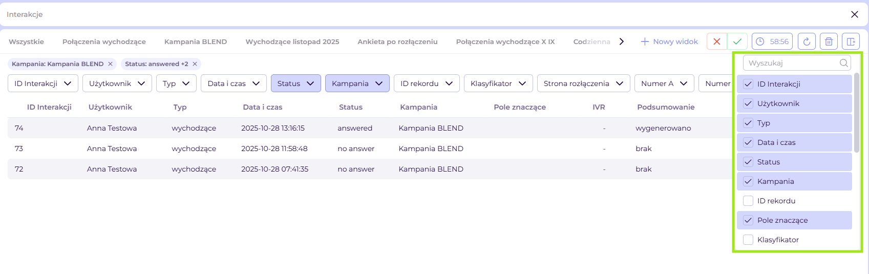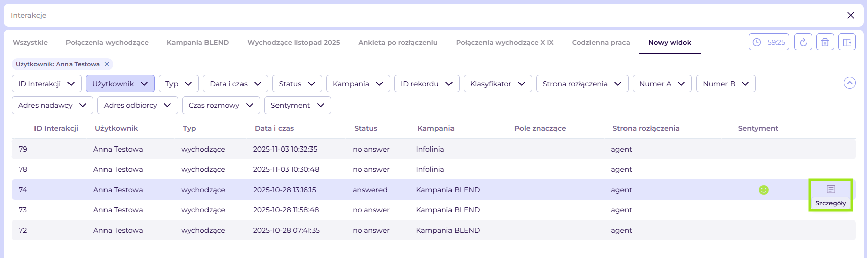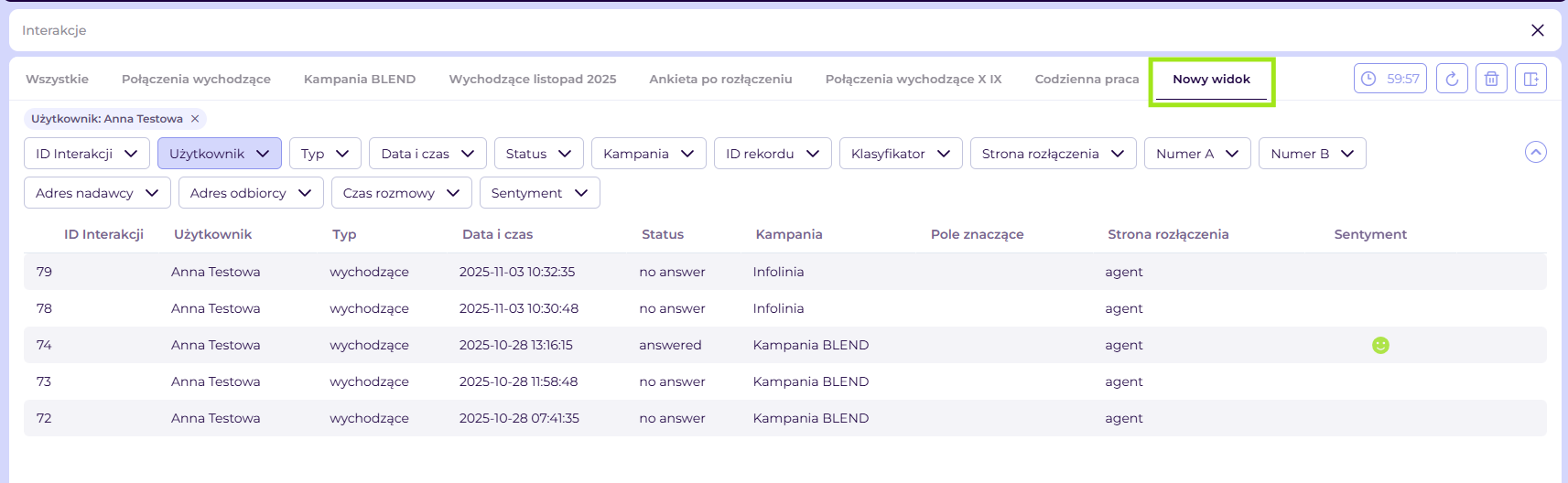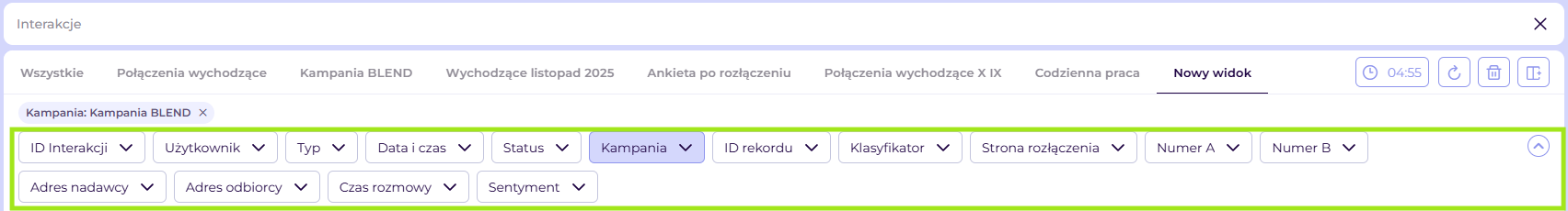 Tak. W jednym widoku możemy łączyć wiele filtrów. Aktywne filtry są widoczne nad listą interakcji.