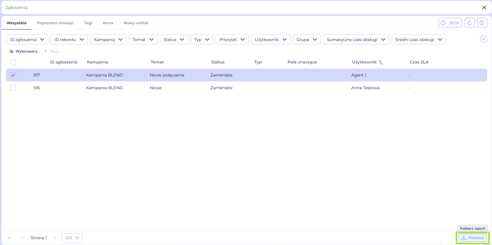 - Raport kolejkuje się do generowania i dostępny jest do pobrania w sekcji Raportowanie > Pliki do pobrania.