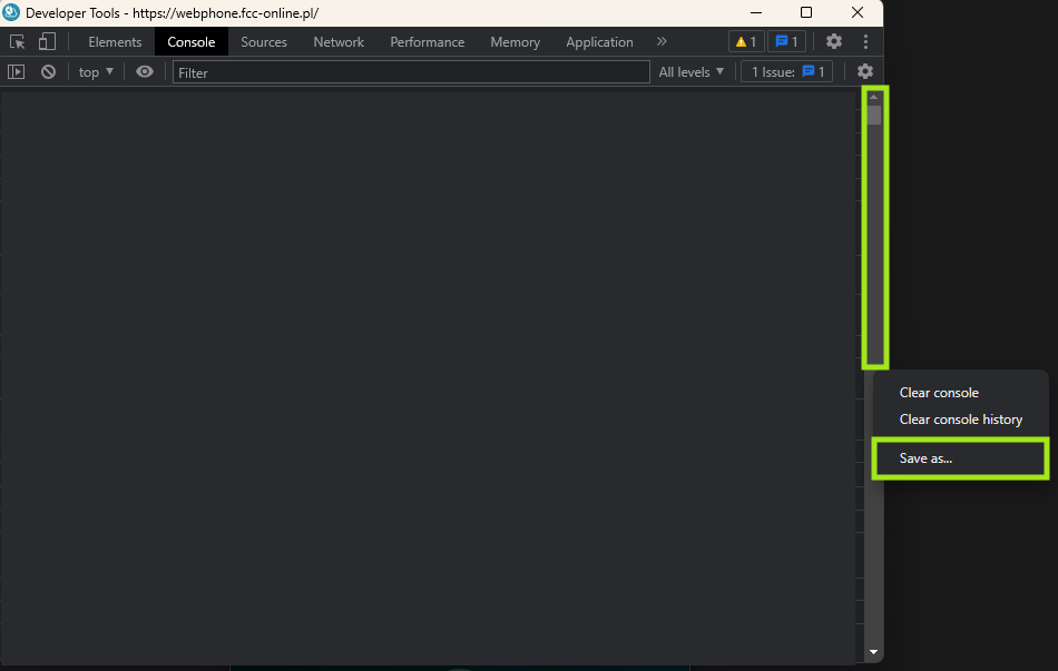 Klikamy prawym przyciskiem myszy na pasku przewijania konsoli > wybieramy Save as..