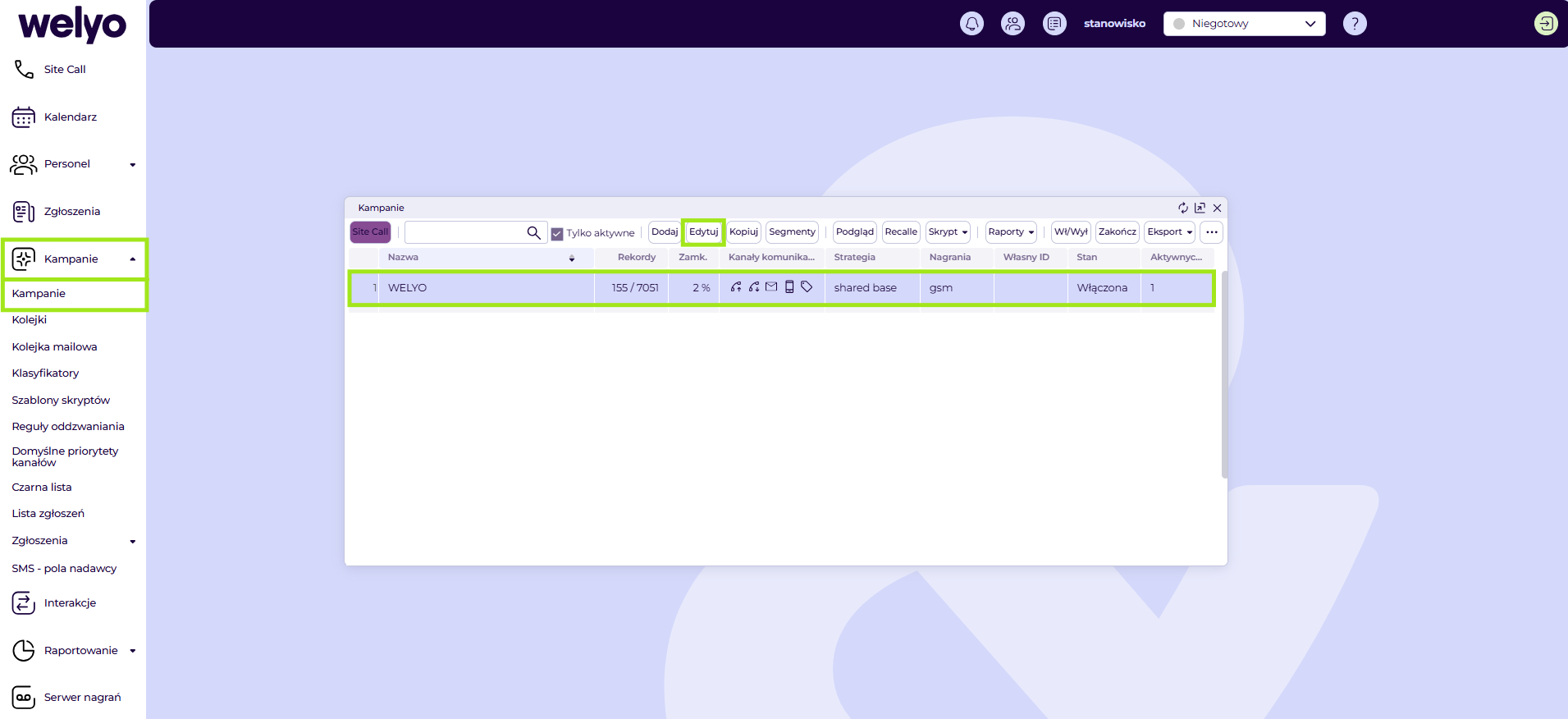 Kampanie > Kampanie > Wybieramy Kampanię do edycji > Edytuj