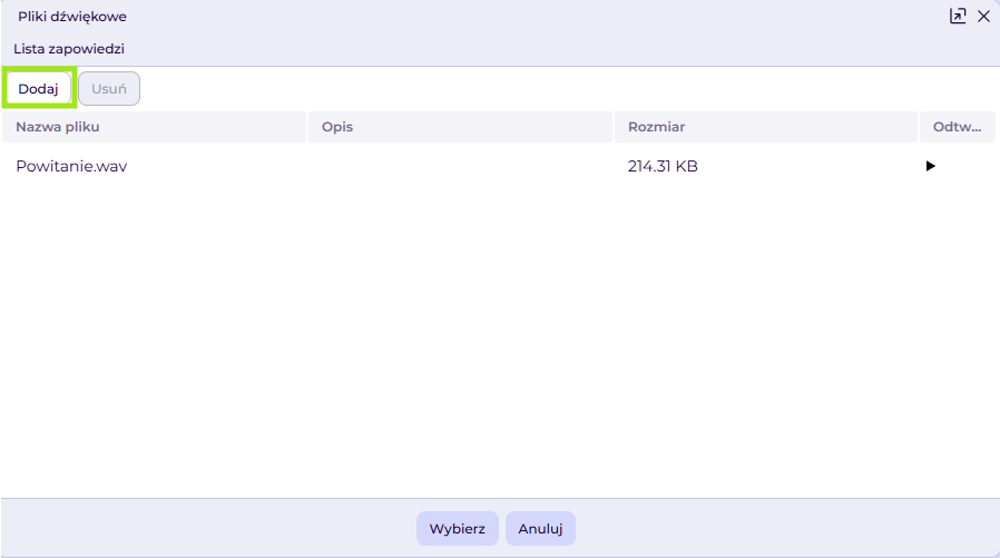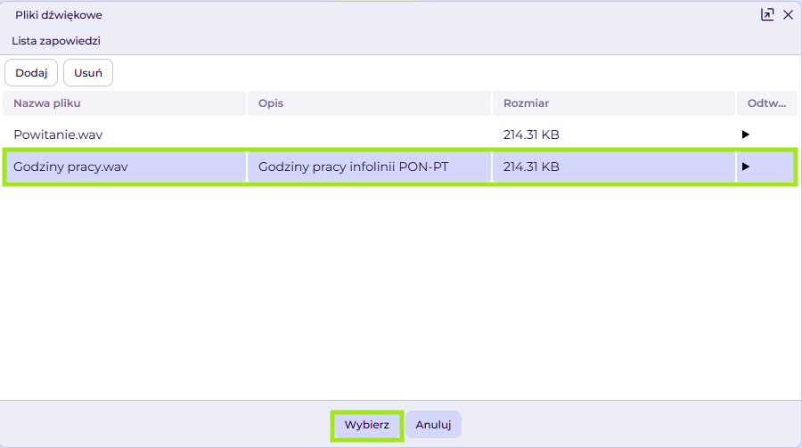 Dodawanie plików dźwiękowych w IVR
