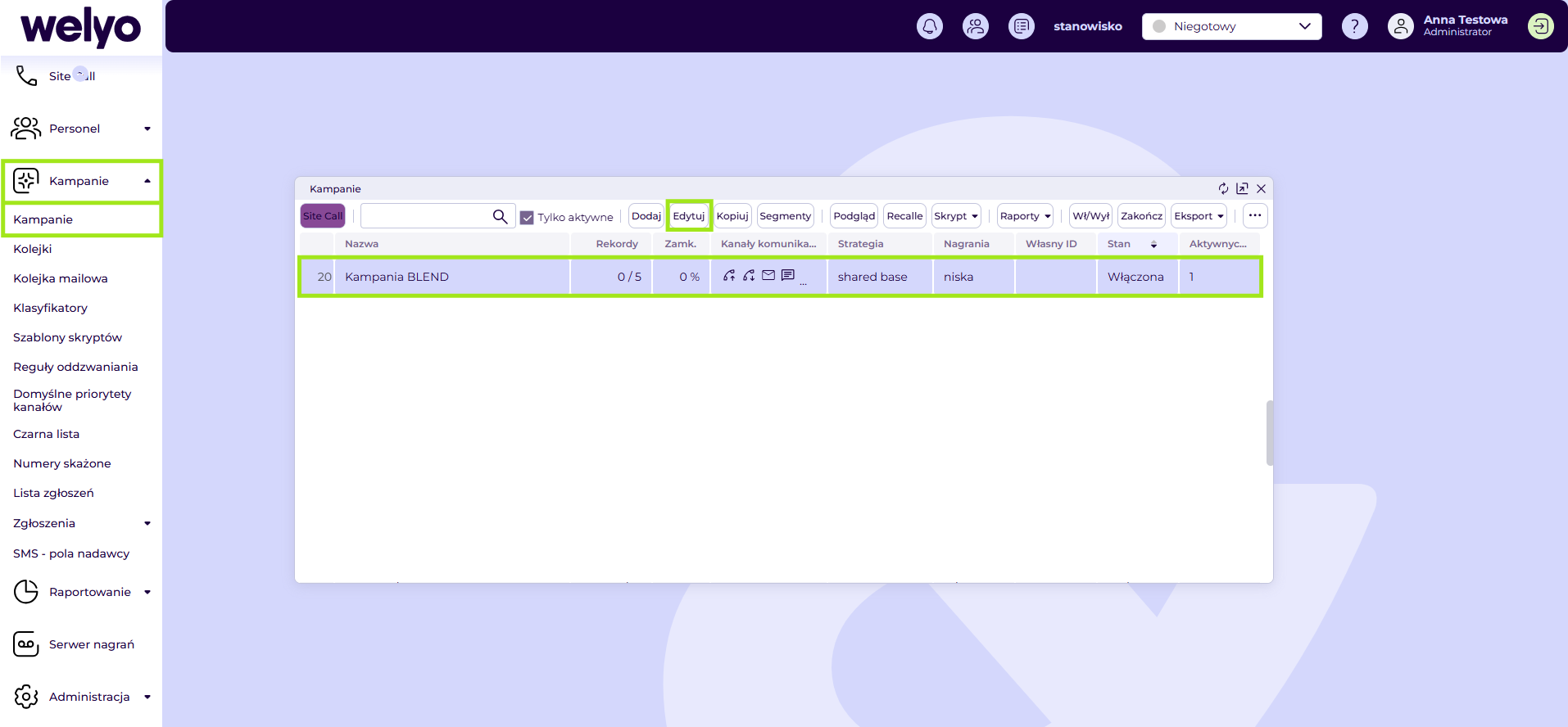 Kampanie > Kampanie > Wybrana kampania > Edytuj