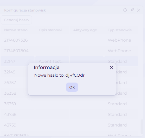 WAŻNE! Po zamknięciu okna z wyświetlonym hasłem nie będzie możliwości jego ponownego podejrzenia, dlatego w razie potrzeby należy wygenerować nowe.