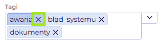 - Aby usunąć tag ze zgłoszenia, kliknij ikonę krzyżyka znajdującą się na etykiecie danego tagu.